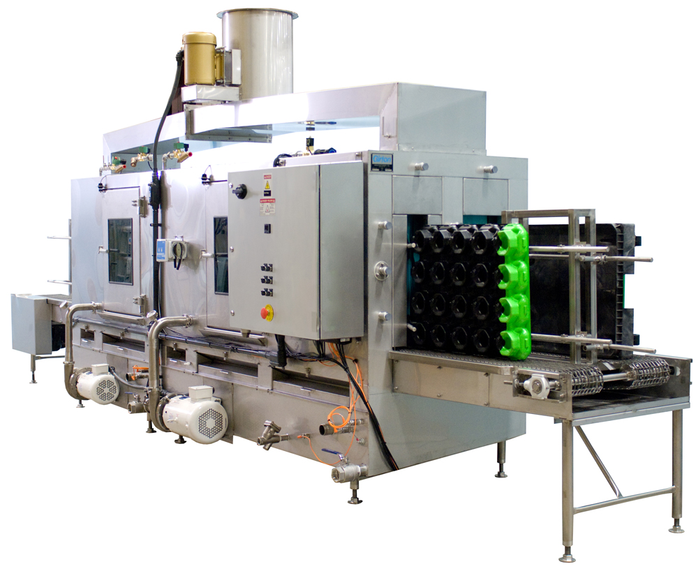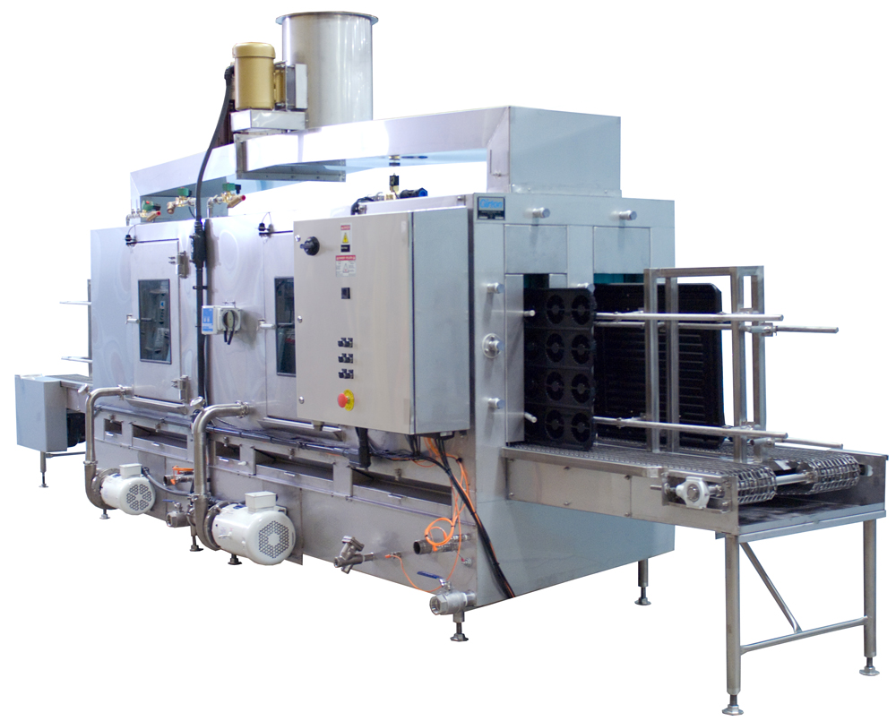 Multi-lane tray washers are used in the food and reusable packaging industries to continuously clean and sanitize high volumes of containers and components.