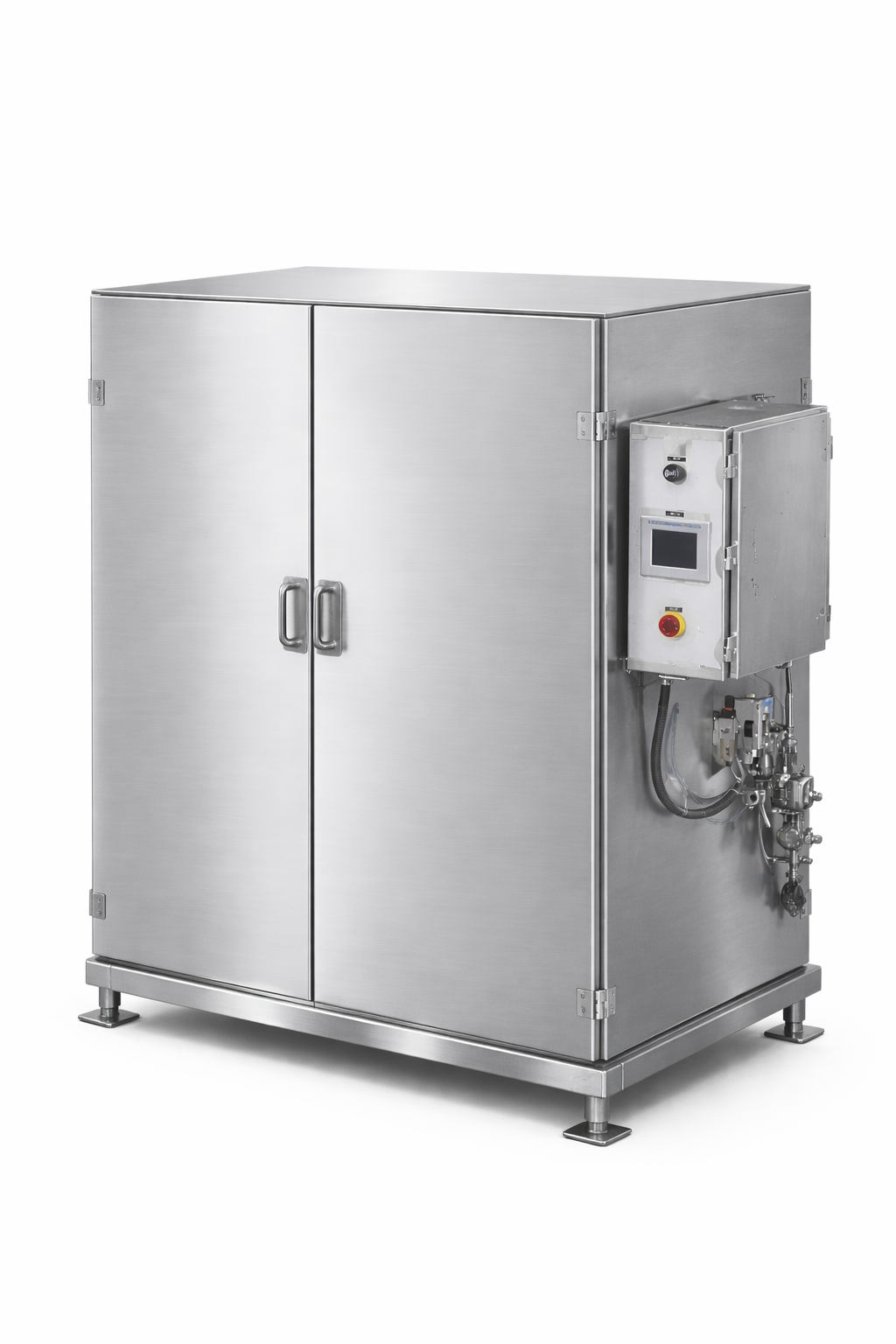 This supports strict GMP requirements by reducing contamination risk and ensuring consistent sanitation results. Wall-mounted systems also improve operator safety and workflow by minimizing handling of large, heavy containers.